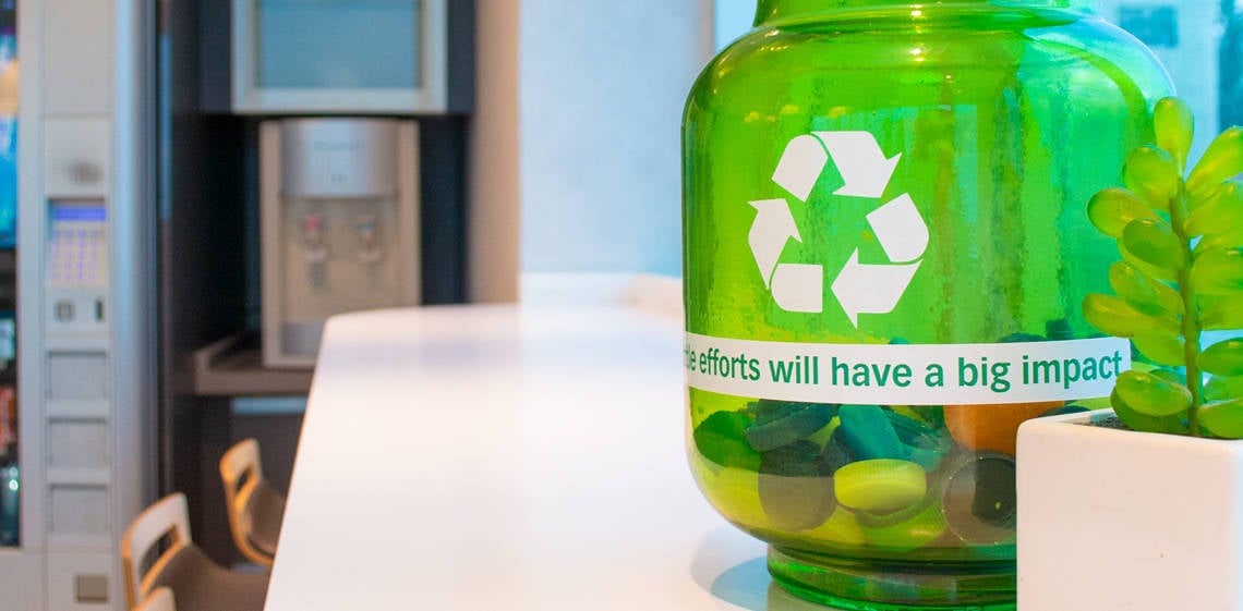 ProgressSoft distributed multiple plastic bottle cap jars and aluminum can disposals at its premises, which will be retained and dedicated to supporting the Green Wheelz initiative.